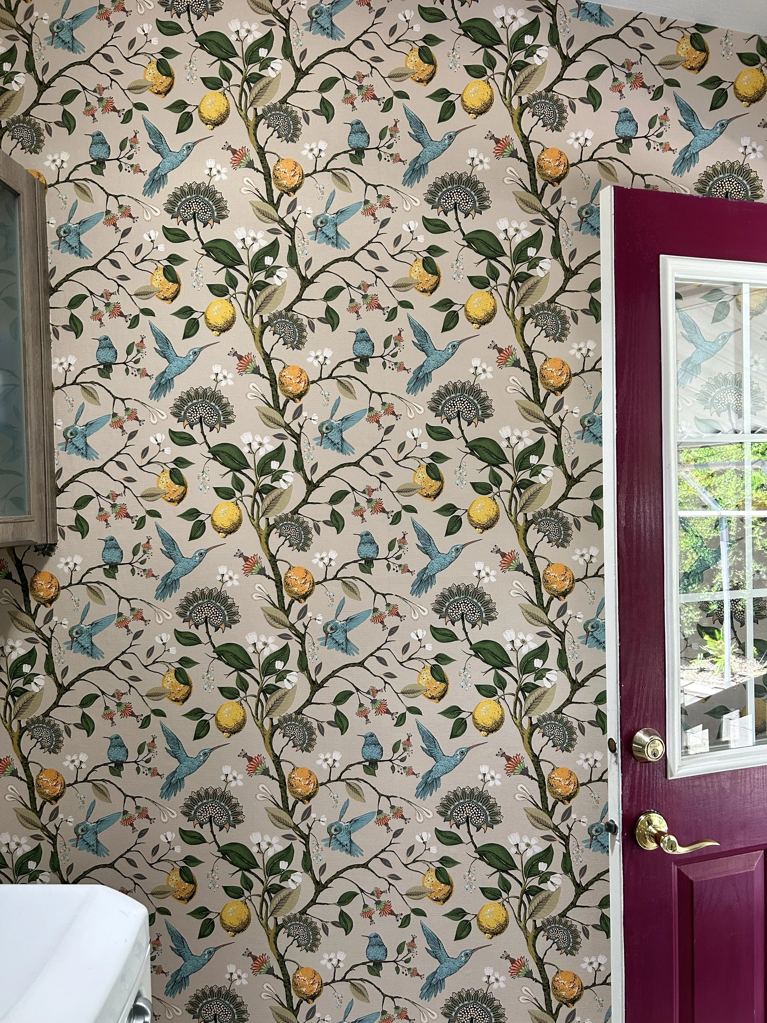 A wallpaper hanging story about course correcting and adjusting based on the needs of the wallpaper. This was in particular a hallway mural with two huge oaks on it!